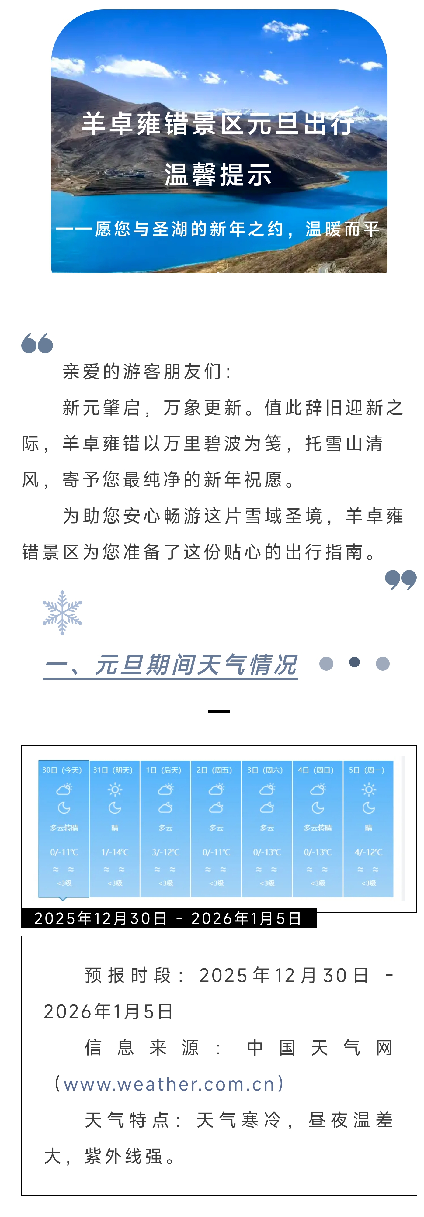 羊卓雍错景区元旦出行温馨提示
